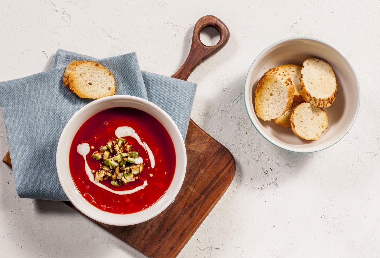 Hazırlanışı 15, pişirme süresi ise 30-35 dakika olan soğuk biber çorbası, bayram menüsünde hafif bir başlangıç olarak tercih edebileceğiniz lezzetli alternatiflerden bir diğeridir. Servis öncesinde buzdolabında iyice soğuyana kadar bekletilmesi önerilir. Ana malzemesinde kapya biberin yer aldığı çorba, domates ve salatalık gibi diğer sebzeler de eşlik eder. 4 kişilik porsiyona yönelik olan biber çorbasını buradan inceleyebilirsiniz.