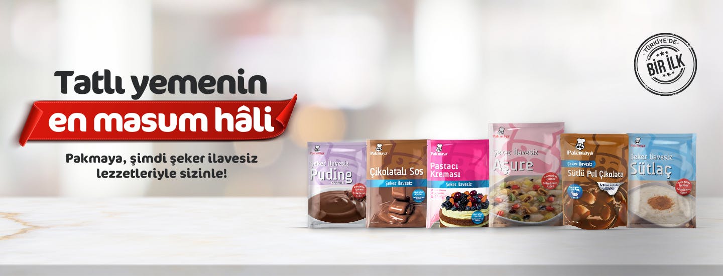Pakmaya şeker ilavesiz ürünler ile şeker miktarını kendisi ayarlamak isteyenler için yeni ürünler sunuyoruz. Türkiye’de bir ilki gerçekleştirerek sunduğumuz ürünlerle şeker ilavesiz tatlılar yapmak çok kolay. Geleneksel lezzetleri en pratik haliyle evinizde hazırlayabilir ve tatlılık oranını kendiniz ayarlayabilirsiniz. Pakmaya şeker ilavesiz ürünler serimizi birçok ulusal markette ve online alışveriş sitelerinde bulabilirsiniz. Şeker ilavesiz ürünler serilerimizle hazırlayabileceğiniz birbirinden pratik ve lezzetli tarifler için tıklayabilirsiniz.