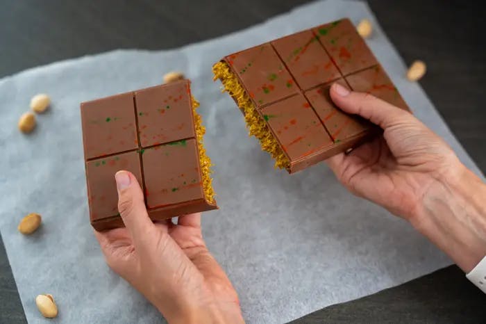 - Servis: Soğuduktan sonra tatlınızı kalıptan çıkarın ve servis edin. Enfes kadayıflı Dubai Çikolatası hazır!