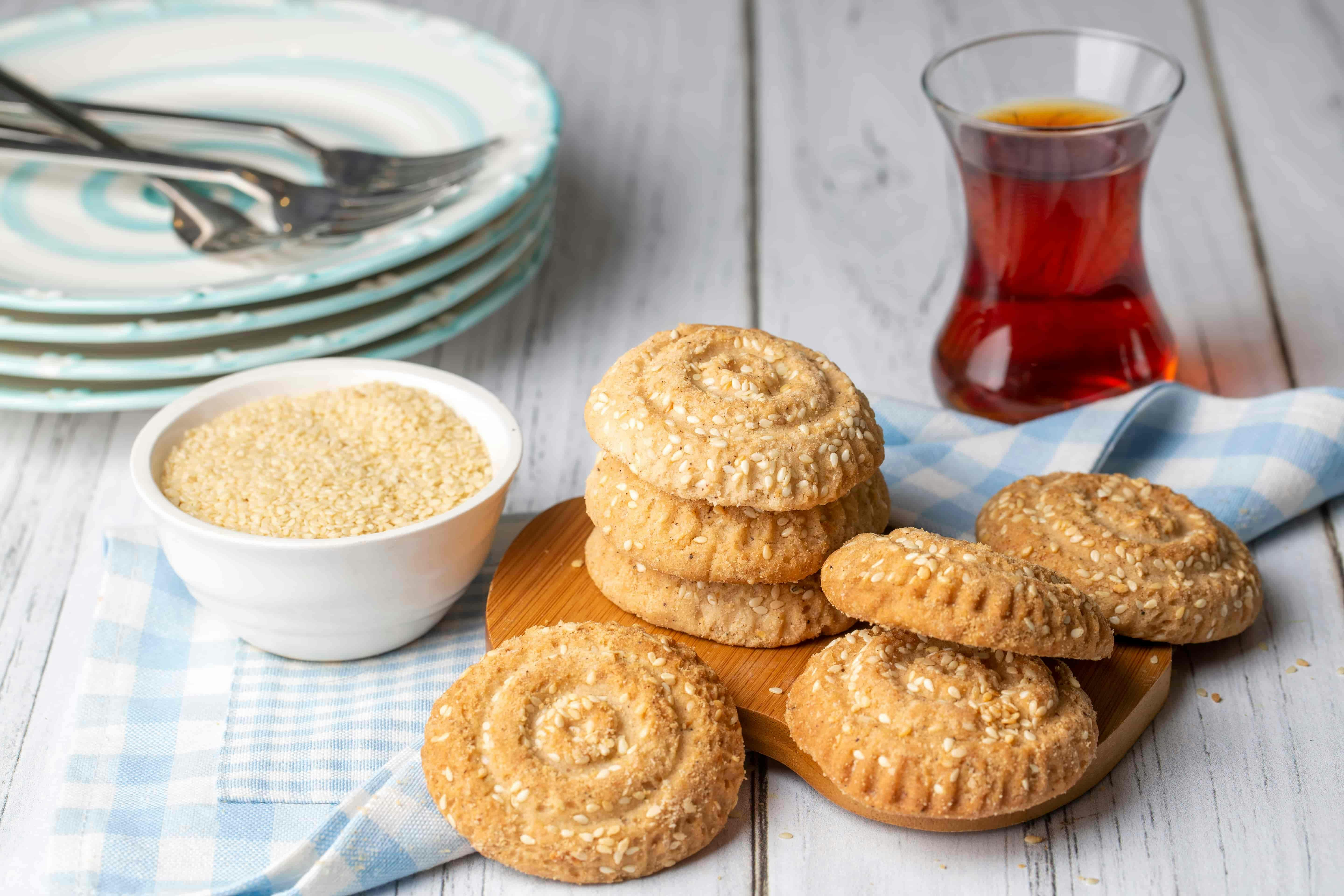 - Ceviz büyüklüğünde parçalara ayırdığınız bezelerin bir yüzünü susama batırın ve daha sonra kömbe kalıbına bastırın. Kalıbı hafifçe tezgaha vurup kalıptan çıkartın.